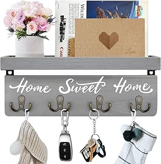 buways Key Holder Wall Mount with 4 Double Hooks-Solid Wood Wall-Mounted Organizer for Keys&Mail Rustic Key Rack Hanger Holder Home Decor for Entryway Living Room (Gray)