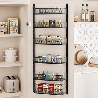 Over The Door Pantry Organizer, 6-Tier Pantry Organization and Storage,Adjustable Hanging Spice Rack Shelves, Cabinet Door Organizer for Easy Install, Home & Kitchen Essentials, Black