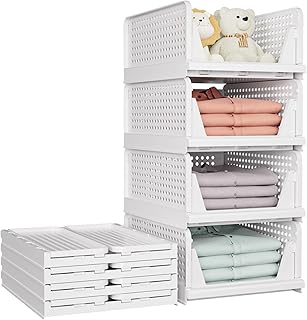 SNSLXH 5 Pack Stackable Closet Storage Basket, Multifunctional & Foldable Closet Organizer for Bathroom Kitchen Laundry Room Wardrobe Storage, Space-Saving Clothes Storage Drawer Organizer, White
