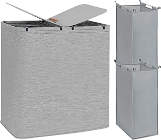 STORAGE MANIAC Double Laundry Hamper, 136L Laundry Sorter with Lid and Removable Bags, Clothes Hamper, Large 2 Section Clothes Basket with Handles for Small Space, Dorm, Closet, Bathroom, Gray