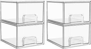 Vtopmart 4 Pack Clear Small Stackable Storage Drawers,Acrylic Bathroom Makeup Organizer,Plastic Storage Bins For Vanity, Undersink, Kitchen Cabinets, Pantry, Home Organization